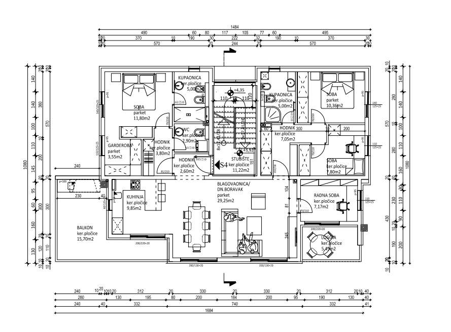 Podstrana, dvosoban stan položen na drugom katu manjeg stambenog objekta u izgradnji. Objekt će imati ukupno četiri stambene jedinice.STAN 4 - podijeljen je na hodnik, kupaonicu, WC, dvije spavaće sobe, master sobu s pripadajućom kupaonicom i garderobom, radnu sobu, kuhinju s blagovaonicom i dnevni boravak. Ukupna površina zatvorenog stambenog dijela iznosi 106, 57 m2, a iz dnevnog dijela se izlazi na balkon površine 15, 7 m2, te loggi-u površine 5, 45 m2.U cijenu je uključena ostava u podrumu objekta površine 32, 50 m2, te jedno vanjsko parkirno mjesto. Postoji mogućnost kupnje dodatnog vanjskog parkirnog mjesta po cijeni od 10 000 EUR-a.Za sve dodatne informacije, stojimo vam na raspolaganju.... Više na eurovilla.hr, ID: 970542