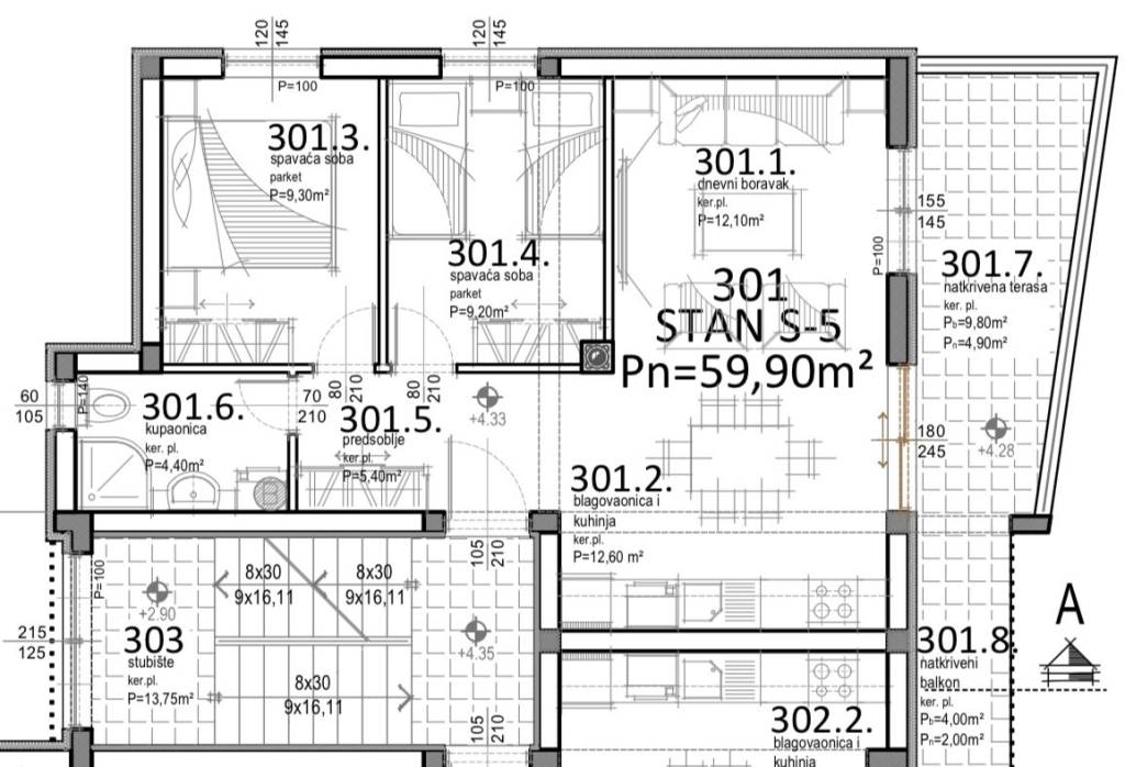 Predstavljamo Vam projekt novogradnje u jednom od najpopularnijih i najrazvijenijih naselja na otoku Pagu, Mandrama. Na odličnoj lokaciji, svega 350 m od mora gradi se kvalitetna stambena zgrada s ukupno 8 stambenih jedinica. U samom okruženju se također nalaze i svi ostali sadržaji koji su potrebni za kvalitetan život ili odmor.STAN S5 - 62,90m2 - PRVI KATStan S5 se nalazi na 1. katu zgrade te je ukupne neto korisne površine 62,90m2. Sastoji se od predsoblja (5,40m2), otvorenog prostora kuhinje, blagovaonice i dnevnog boravka (28,70m2), dvije spavaće sobe (9,30m2 i 9,20m2), potpuno opremljene kupaonice (4,40m2) te natkrivenog balkona (9,80m2). Stanu uz to pripada i jedno vanjsko parkirno mjesto (12,50m2).Predviđeno useljenje : 05/2026Od opreme i materijala valja izdvojit:Toplinsku izolaciju od stiropora debljine 10cm Multi split sustav klimatizacije u svim spavaćim sobama i dnevnom boravku Protuprovalna i protupožarna vrataVrhunska unutarnja i vanjska stolarija Podloge od keramike i parketaI još mnogo toga..Za više informacija i dogovor oko razgledavanja, obratite nam se s povjerenjem.... Više na eurovilla.hr, ID: 977105