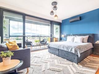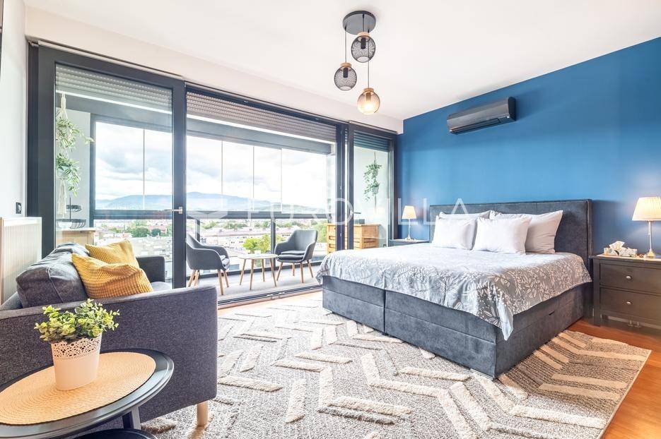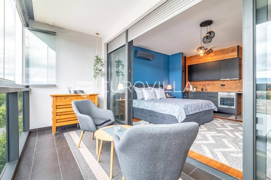 Špansko- Nova galerija, izvrstan stambeno-poslovni kompleks na Zapadu grada.Jednosoban stan (garsonjera) površine 43 m2, nalazi se na sedmom katu sa spektakularnim pogledom na grad i Sljeme, a sastoji se od: ulaznog hodnika s puno ugradbenih ormara, prostrane kupaonice s walk-in tušem te open space prostora s izlazom na prostranu lođu.Kompletno opremljen i vrhunski uređen namještajem po mjeri.Odlično održavana zgrada s liftom, odlične prometne povezanosti te u blizini svih sadržaja za život.Za više informacija stojimo Vam na raspolaganju.... Više na eurovilla.hr, ID: 996115