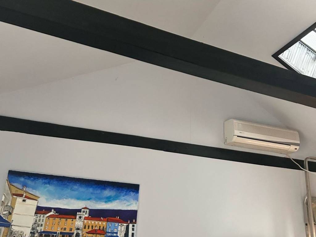 Konoba se nalazi u prizemlju kuće a apartman u potkrovlju kuće , ima visoki strop , nema kose zidove .