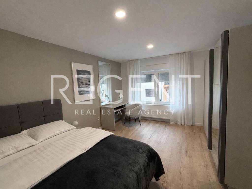 U mirnom dijelu podsljemenske zone nalazi se trosoban stan za najam smješten u prizemlju novogradnje. Idealan je za one koji žele kvalitetan, moderan prostor u ugodnom i zelenom okruženju, a pritom ostati dobro povezani s gradom. Sastoji se od ulaznog hodnika, dvije spavaće sobe, pri čemu veća soba ima vlastiti walk-in prostor za garderobu, kupaonice s wc-om te dnevnog boravka povezanog s kuhinjom i blagovaonicom. Iz dnevne zone izlazi se na terasu koja pruža dodatni komfor i prostor za opuštanje. Stan je u potpunosti moderno i ukusno namješten te je spreman za useljenje. Lokacija je mirna i okružena zelenilom, a istovremeno omogućuje brzu povezanost s centrom grada i svim važnim sadržajima. U blizini se nalaze trgovine, škole, vrtići i javni prijevoz, što svakodnevni život čini jednostavnim i praktičnim. Stan se nalazi u novogradnji, odmah je useljiv, a uz njega dolazi i garažno parkirno mjesto. Kućni ljubimci nisu dozvoljeni. Za više informacija ili dogovor oko razgledavanja, slobodno nam se javite.