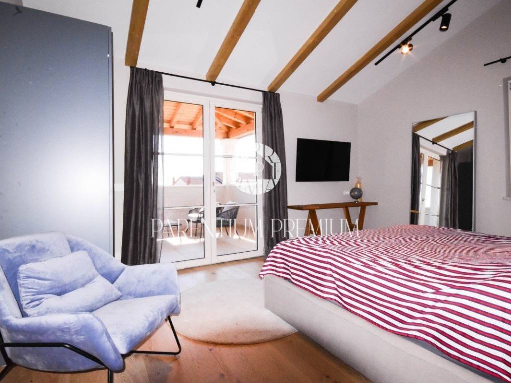 Na katu imamo 3 spavaće sobe, 2 kupaone te 2 terase sa kojih se pruža odličan pogled na more.