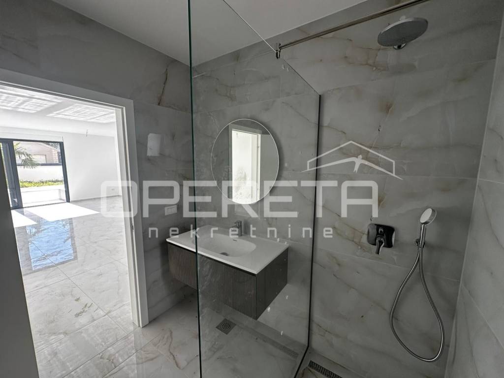 U Okrugu Gornjem nudi se luksuzan stan u novogradnji S1 površine 89,07 m, s privatnim bazenom od 11,90 m i prostranim vrtom od 131,90 m. Stan se nalazi na prizemlju moderne zgrade s liftom, orijentiran sjever-jug-zapad, na samo 130 m od mora i plaže, što omogućava idealnu kombinaciju privatnosti i blizine svih sadržaja.