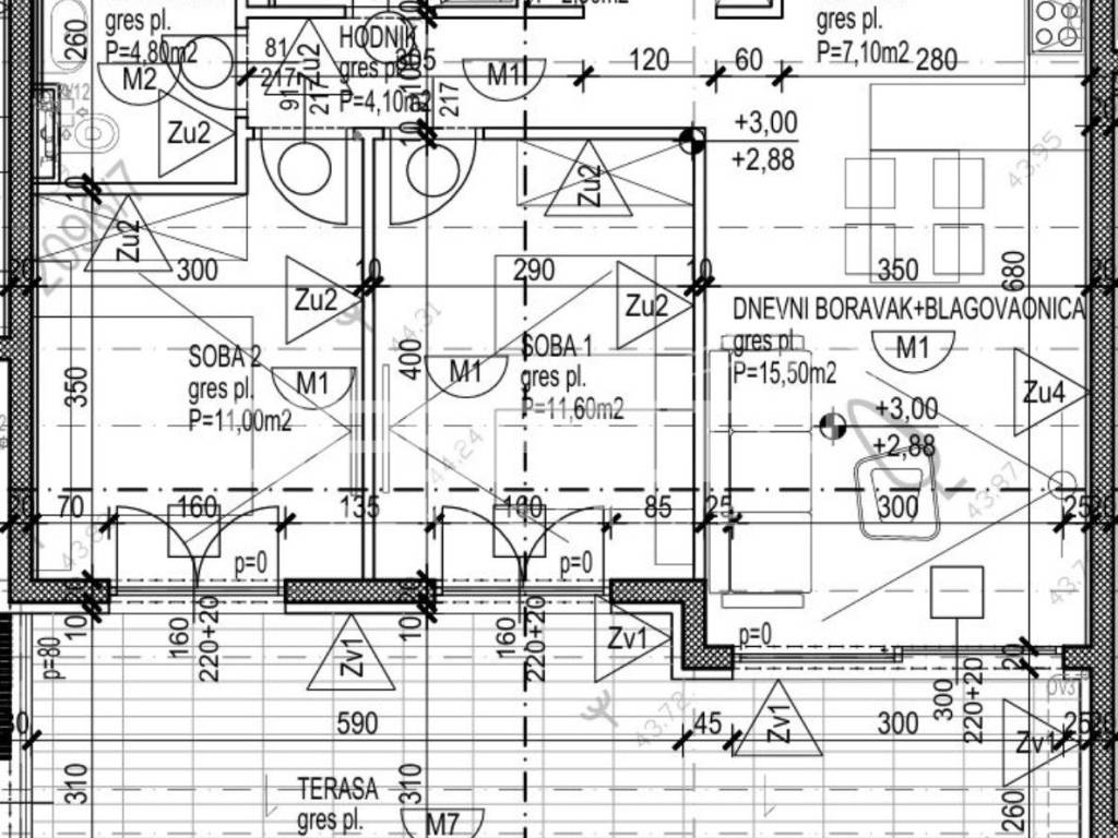 Iz ponude izdvajamo stan S7 koji se nalazi na 1. katu, a sastoji se od: ulaznog dijela, dnevnog boravka i blagavaonice, kuhinje, hodnika, 2 spavaće sobe, kupaonice, zasebnog toaleta, prostrane terase 27,20m2 (koef. 0,50).