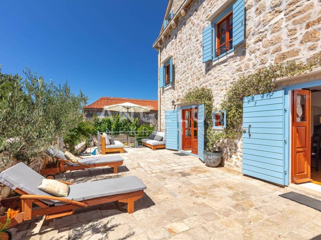 In one of the most desirable locations on the island of Brač, in the picturesque town of Milna, an authentic Dalmatian stone house is for sale located literally in the center of events, yet in an environment that provides privacy and a special Mediterranean atmosphere.