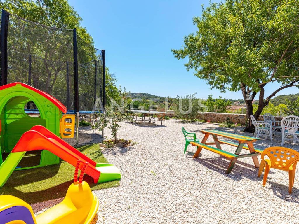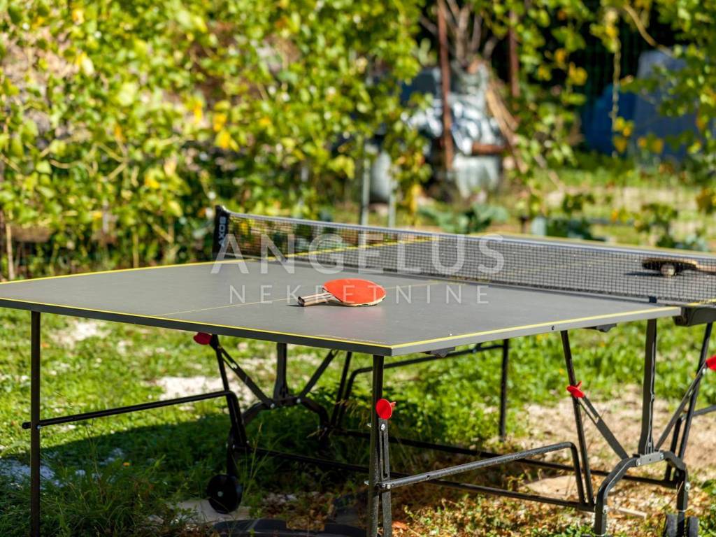 Neposredno uz kuću se nalazi parcela površine 300 m2 prava privatna oaza. Masline, zelenilo i mir stvaraju ambijent gotovo rustikalne idile, a u središtu vrta smješten je kutak za sjedenje u hladu, idealan za opuštanje ili meditaciju. Na parceli se nalazi i zasebna, potpuno legalizirana građevina površine 21 m, koja pruža izniman potencijal bilo kao studio za goste, atelje, wellness prostor ili intimna kućica za odmor.
