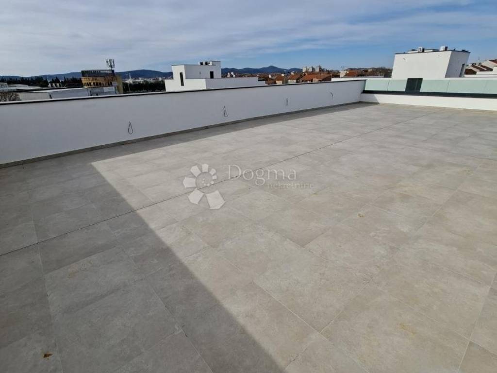 Stan se sastoji od dvije spavaće sobe, kuhinje, blagovaone, dnevnog boravka koji ima izlaz na balkon,kupaone te vlastite krovne terase od 67,20 m2. U zgradi postoji lift što olakšava prijenos stvari i svakodnevno kretanje.