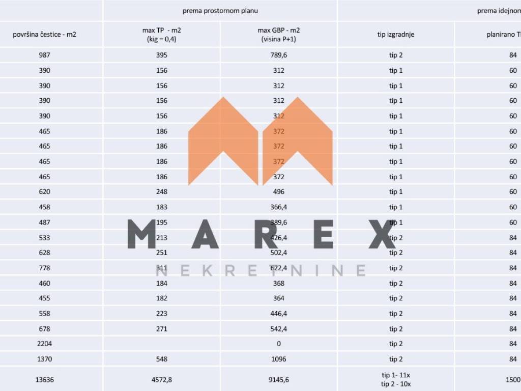 Mogućnost kupnje i zasebnih parcela kako su navedene i označene u idejnom planu.