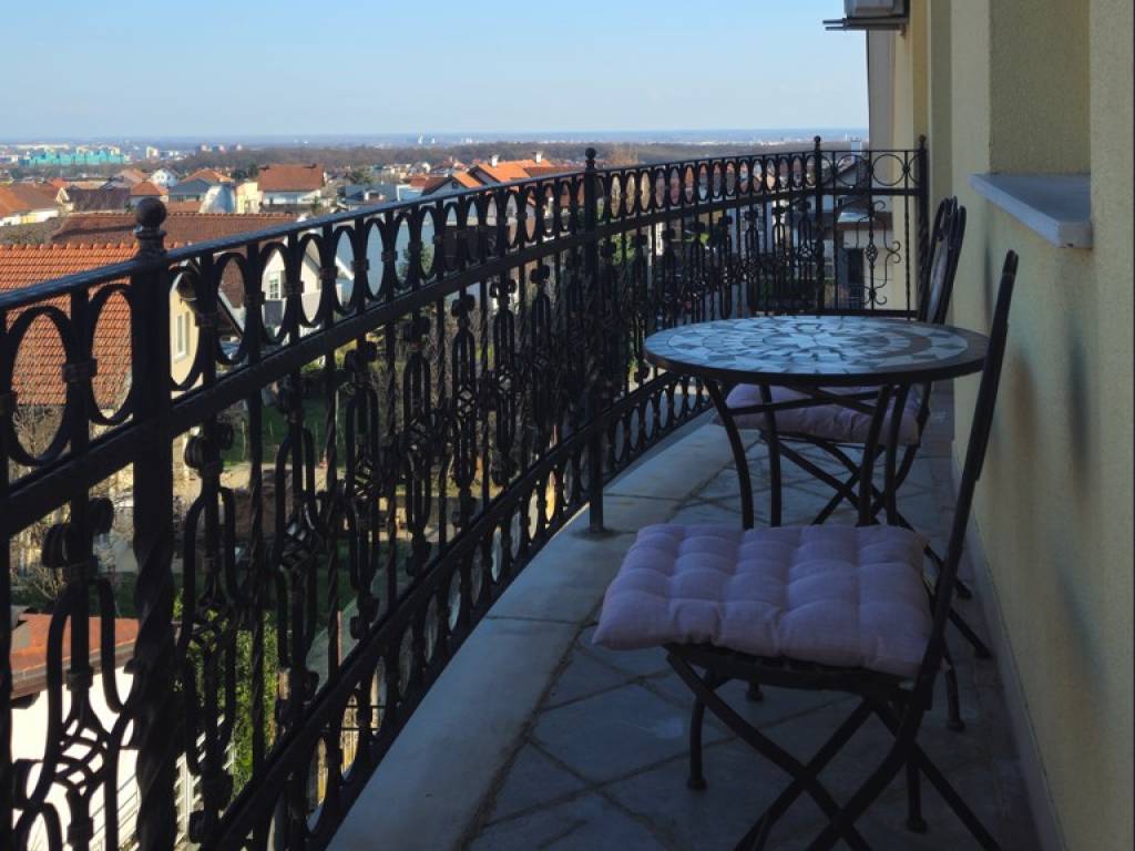 Pripada mu i balkon koji je idealan za jutarnju kavu i opuštanje, kao i vanjsko parkirno mjesto, te postoji mogućnost korištenja dječjeg igrališta koje se nalazi u dvorištu vile.
