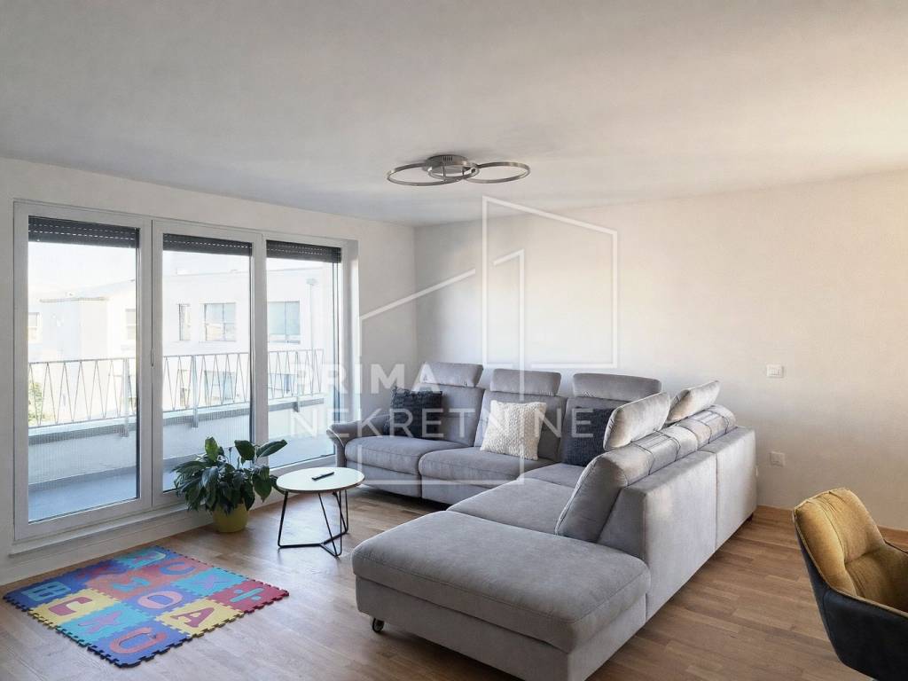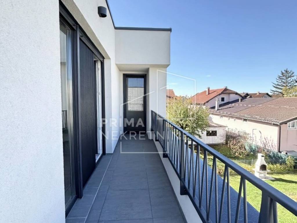 Prodaje se prostran i potpuno nov stan grijane stambene površine 107,46 m2, smješten na vrhu manje novogradnje sa svega četiri stana, u mirnom okruženju između Velike Gorice i Zagreba.