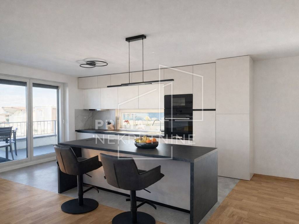 Sve prostorije opremljene su Daikin Comfora klima uređajima, a u spavaćim sobama nalaze se ugradbeni ormari koji pružaju dovoljno prostora za pohranu. U stanu je ugrađena nova kuhinja izrađena po mjeri s velikim kuhinjskim otokom i Bosch aparatima uvezenim iz Njemačke.