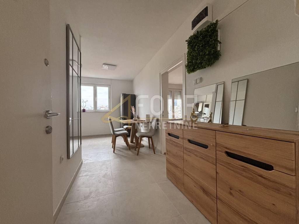 Iznajmljuje se jednosobni stan s balkonom smješten na Belvederu, s prekrasnim pogledom na more. Adaptiran je 2025. godine i potpuno namješten te opremljen svime potrebnim za udoban život. Sastoji se od hodnika, kupaonice, kuhinje s blagovaonicom i jedne sobe. Orijentiran je na jug i zapad, klimatiziran te ima PVC stolariju. Manji kućni ljubimci su dobrodošli. Ovaj stan predstavlja idealnu priliku za ugodan život s pogledom na more u mirnom dijelu Belvedera.