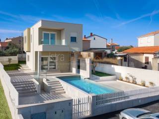 Unutrašnjost vile opremljena je podnim grijanjem u cijelom objektu i klimatizacijom u svim prostorijama, pružajući maksimalnu udobnost tijekom cijele godine. Vlastita parkirna mjesta omogućuju jednostavan i siguran smještaj vozila, dok pažljivo arhitektonski osmišljeni okoliš upotpunjuje dojam luksuznog i funkcionalnog doma.