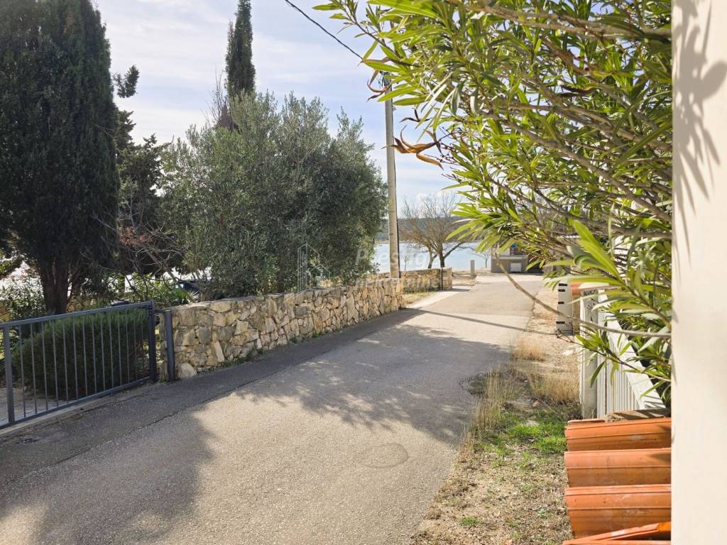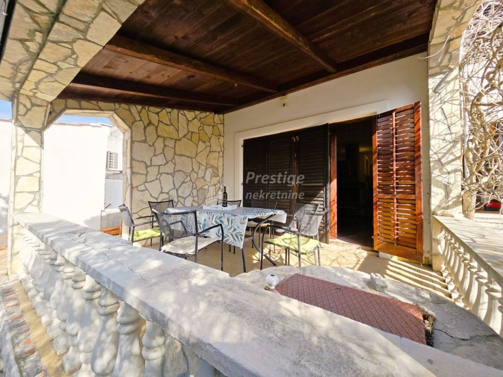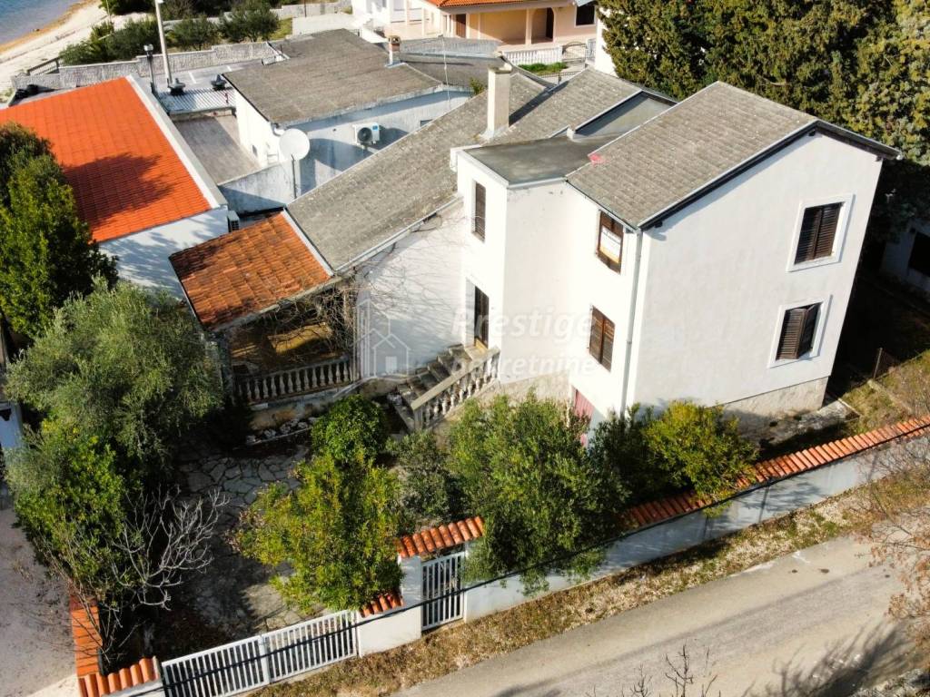 Na prodaju je atraktivna kuća smještena u mirnom mjestu Crna Punta (Kruševo), tik uz Karinsko more, samo dvadeset metara od prekrasne plaže. Kuća se prostire na parceli od 300 m2, okružena zelenilom i diskretnim dvorištem koje pruža privatnost, a istovremeno omogućuje parkiranje tri automobila – jedan u prostranoj garaži i dva dodatna u dvorištu.