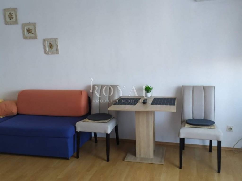 Garsonijera se sastoji od kuhinje, prostranog dnevnog boravka koji služi i kao spavaći dio, predsoblja, kupaonice te balkona. Stan je južno orijentiran, vrlo sunčan tijekom cijelog dana i pruža lijep, otvoren pogled na more.