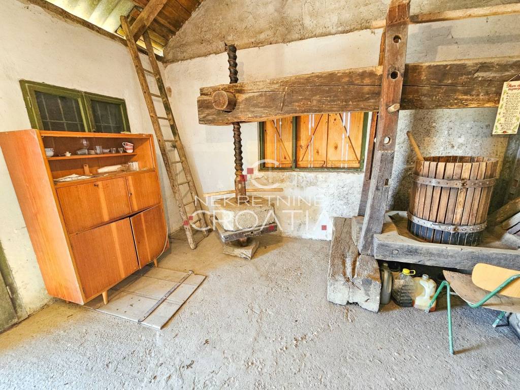 Ekskluzivna prodaja, samo kod nas! 13 EUR-a/m2! Svega 2 km od Varaždinskih Toplica: klijet tlocrtne površine 35 m2 u Vrtlinovcu, na prostranom zemljištu površine 3.245 m2. Zemljište je široko i vrlo lijepog položaja na sunčanoj, jugoistočnoj strani. Širina parcele: 26 m! Sukladno prostornom planu, u zoni gradnje je cca 800 m2! Objekt je za adaptaciju, ali ima veliki potencijal zbog velike i široke parcele na mirnoj lokaciji sa predivnim pogledom. Klijet se sastoji od podruma (25 m2) građenog 1946. godine i kata (35 m2) sa dvije prostorije i balkonom iz 1965. godine. U nekretnini su PRIKLJUČCI STRUJE I VODE, a kupaonicu/WC nema. U podrumu se nalazi stara drvena preša za vino, koja je i dalje u funkciji, što je zanimljiv i vrijedan detalj za sve ljubitelje vina i tradicije. Odlična lokacija i dobra prometna povezanost- Varaždin je udaljen svega nekoliko minuta vožnje (8 km), dok je Zagreb udaljen oko 40 minuta.