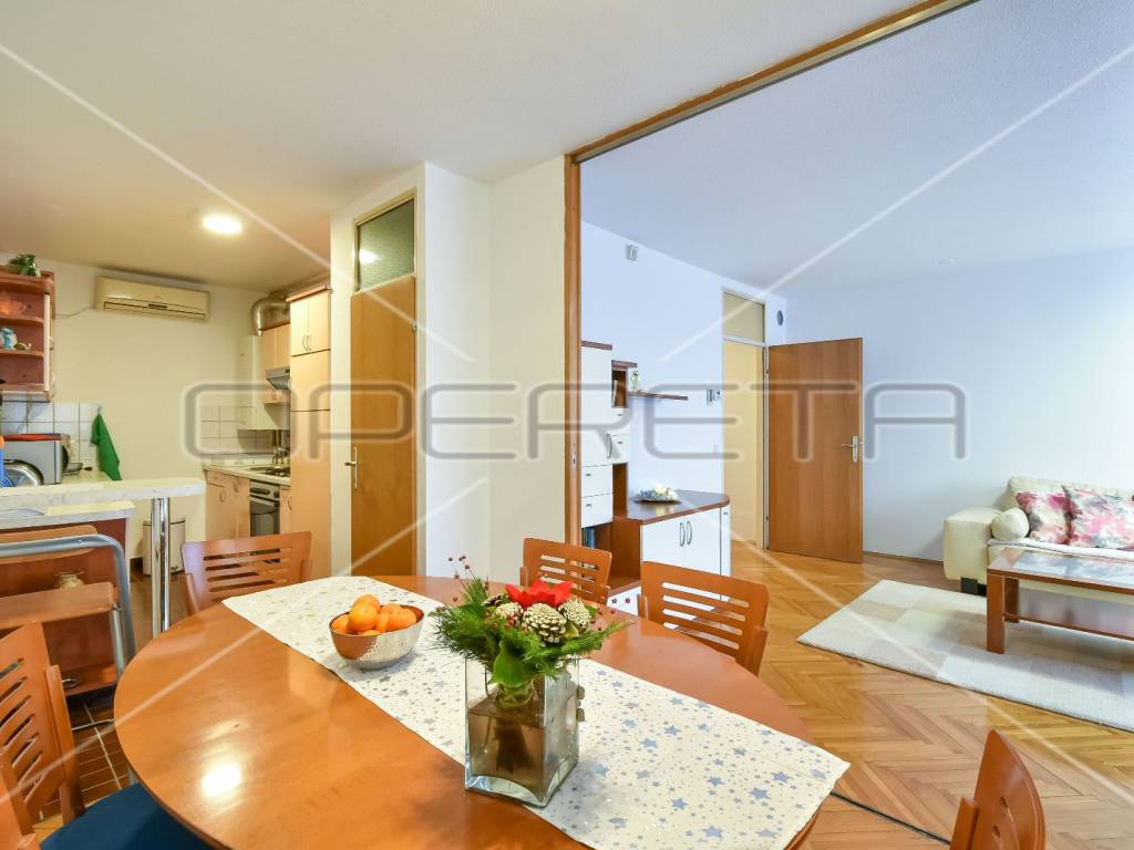 Iznajmljuje 3.5 soban stan, prostran, pun svijetlosti, na ekskluzivnoj lokaciji u Vlaškoj ulici, u neposrednoj blizini glavnog zagrebačkog trga, na nekoliko minuta od parka Ribnjak, tramvajske stanice i supermarketa. Stan se iznajmljuje potpuno namješten, moderno uređen, opremljen svim potrebnim kućanskim aparatima. Sastoji se od ulaznog hodnika, dnevnog boravka sa kuhinjom i blagovaonicom, smočnice, kupaonice, zasebnog WC-a, dvije spavaće sobe te male radne sobe. Stanu pripada i spremište, parkirno mjesto u dvorištu zgrade (pod rampom) i loggia veličine 4m2.