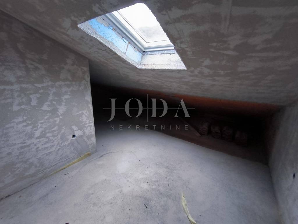 Stan je u roh bau fazi gradnje i kao takav se prodaje. Provedena struja, voda, kanalizacija, separator, instalacije za klima uređaje, keramika po stepeništu, vrata na drvarnici. Stan se nalazi u potkrovlju i sastoji se od kuhinje i dnevnog boravka, kupaonice i sobe, ukupne površine 48,70 m2 sa pripadajućim parkiralištem.
