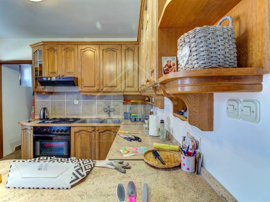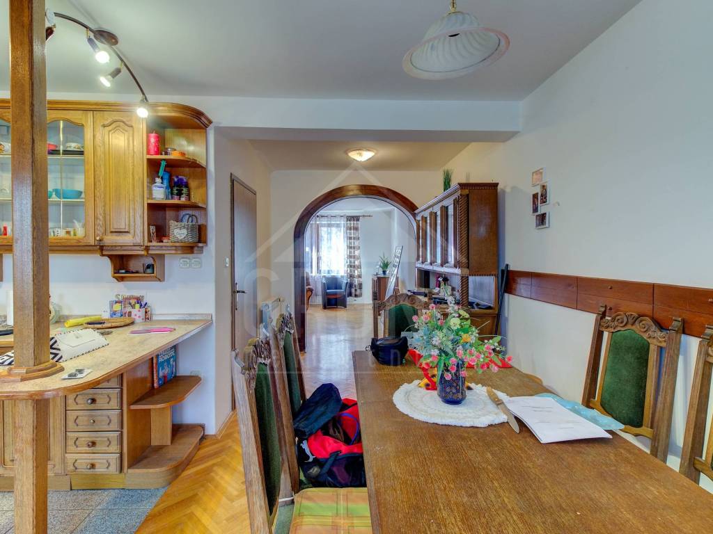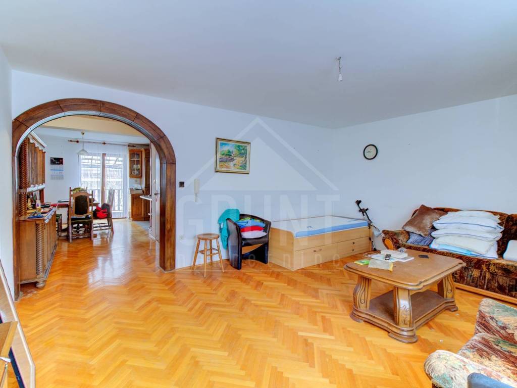 Kuća 1 – ukupne stambene površine od cca. 220 m2, sastoji se od prizemlja, dva kata i tavana. Na prizemlju se nalazi velika garaža sa izlaskom na dvorište, dvije prostorije od kojih jedna služi kao kotlovnica i mali toalet. Na katu se nalazi veliki dnevni boravak sa otvorenom blagovaonicom, kuhinjom i ostavom te izlaskom na veliku natkrivenu terasu i jedna kupaonica sa tuš kabinom. Na drugome katu se nalaze tri velike spavaće sobe te još jedna kupaonica. Pristup na tavan je izveden sa drvenim stubištem, krov renoviran i podaskan.