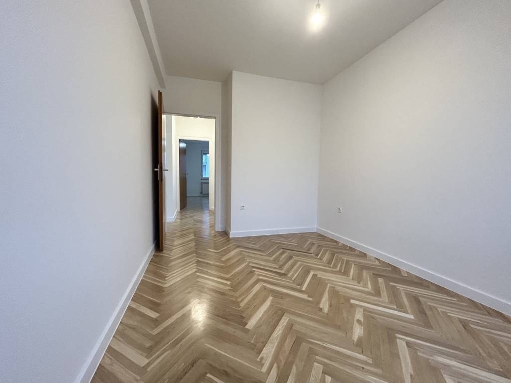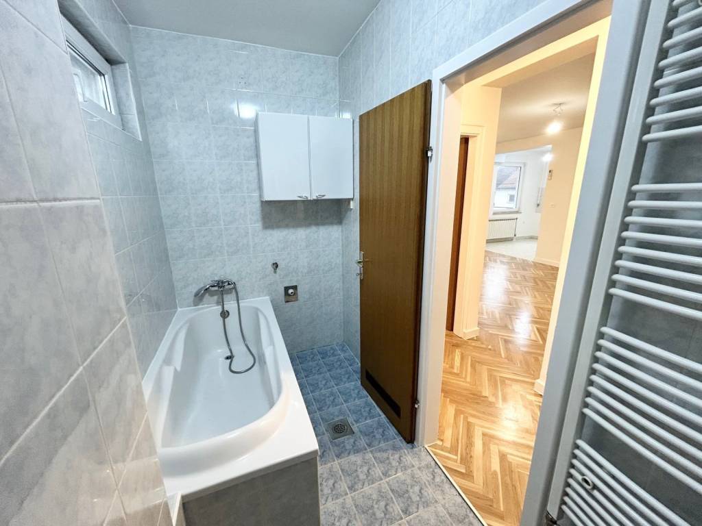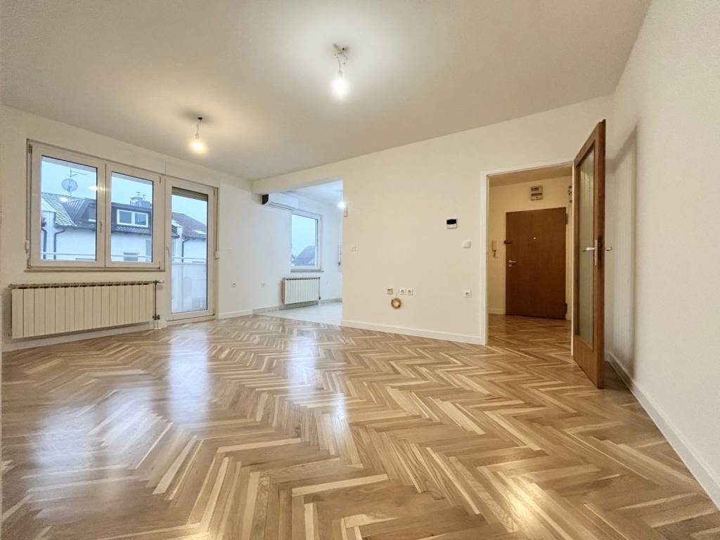 Uređenje stana upravo je dovršeno – parketi su prebrušeni i polakirani, zidovi svježe obojani, a ugrađena je i dizalica topline, što osigurava energetsku učinkovitost i niže režijske troškove.