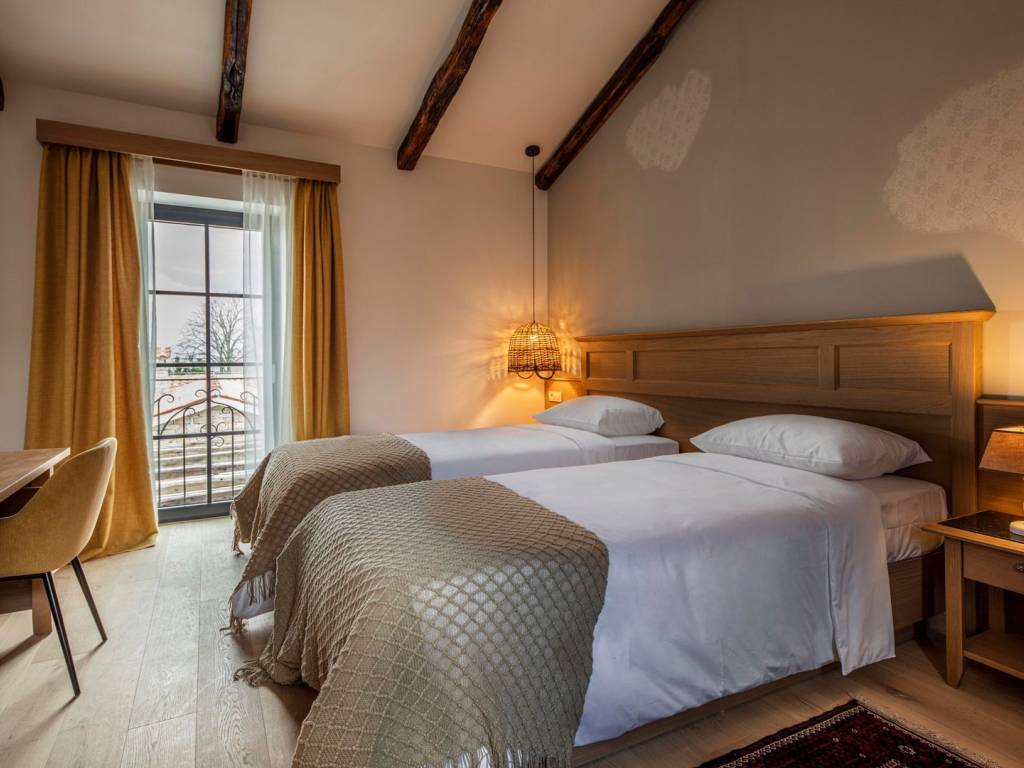Kompleks se sastoji od više luksuznih građevina s kompletno uređenih s 12 soba , svaka soba ima svoje kupatilo , u prizemlju svake kuće se nalazi komforan dnevni boravak s kuhinjom , spremišta ,unutarnje i vanjske natkrivene blagovaone s kuhinjama , kamini , fitness dvorana , sauna , bazeni , vinoteka , u uređenom dvorištu nalaze se velika dva bazena .
