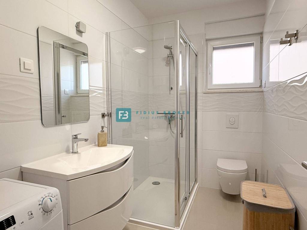 Nova stambena zgrada sa 7 moderno uređenih stanova, izgrađena 2021. godine, nalazi se na odličnoj lokaciji, udaljena oko 500 m od uređene plaže i 1100 m od centra. Od opreme izdvajamo: stiropor fasada, protuprovalna ulazna vrata, rolete s električnim podizačima, komarnici, kvalitetne keramičke pločice u beige nijansi, moderne kupaonske sanitarije, 1 klima uređaj, kompletno opremljena kuhinja.