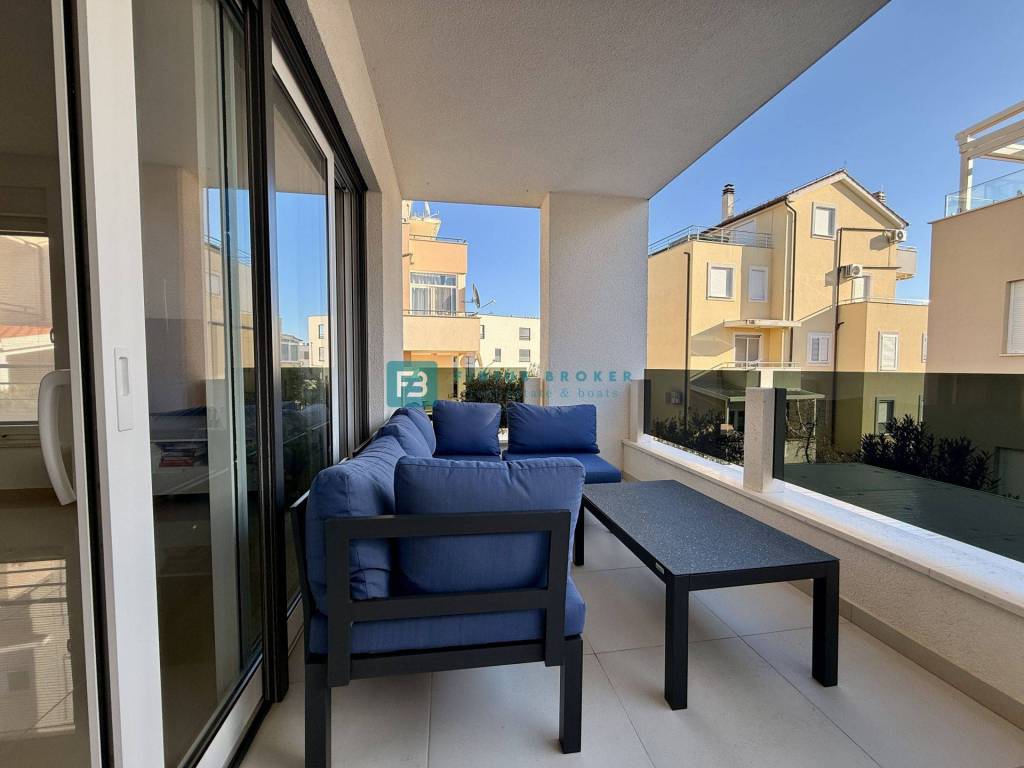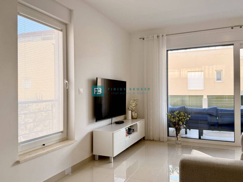 VODICE - Prodaje se luksuzno namješten stan s jednom spavaćom sobom, terasom i spremištem u podrumu!