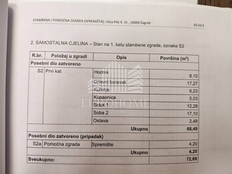 Prodaje se potpuno uređen i etažiran stan u kući s posebnim ulazom i urednim vlasništvom 1/1. Stanu pripada 1/3 dvorišta te šupa 4,2 m². Stan ima posebna brojila za plin i struju, dok je za vodu interno brojilo (plaća se stvarna potrošnja).