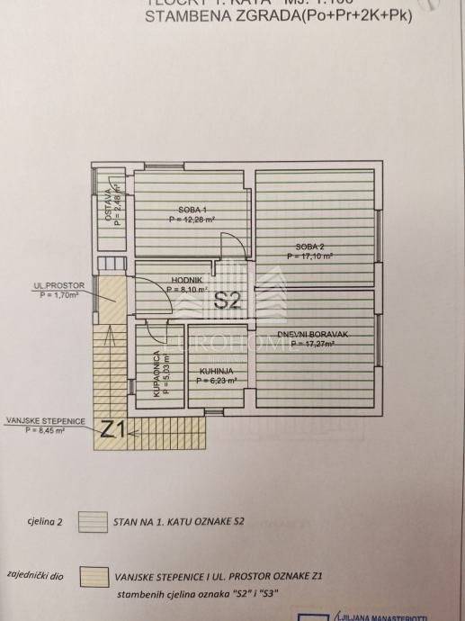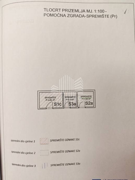 Raspored: • 2 spavaće sobe • dnevni boravak • kuhinja s blagovaonicom • hodnik • kupaonica s WC-om • ostava
