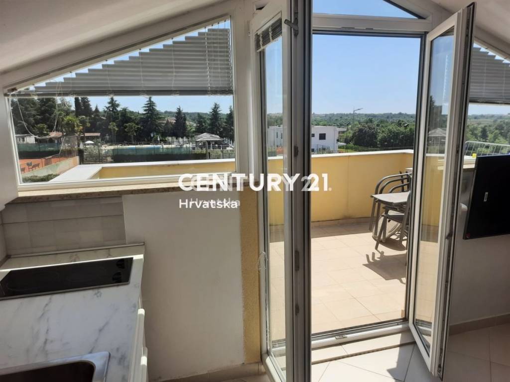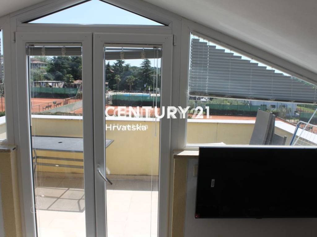 Stan je s jedne strane okružen maslinikom a s druge strane, s velike natkrivene terase gleda na more i teniske terene.
