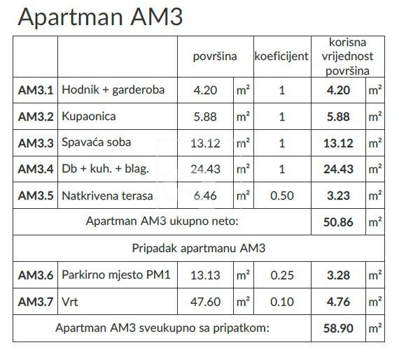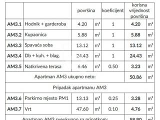 Stanovi su različitih površina i kvadratura te tako imamo nekoliko stanova s jednom spavaćom sobom (1S+DB) te nekoliko stanova s dvije spavaće sobe (2S+DB). Svakom stanu pripada po jedno parkirno mjesto smješteno ispred same zgrade.