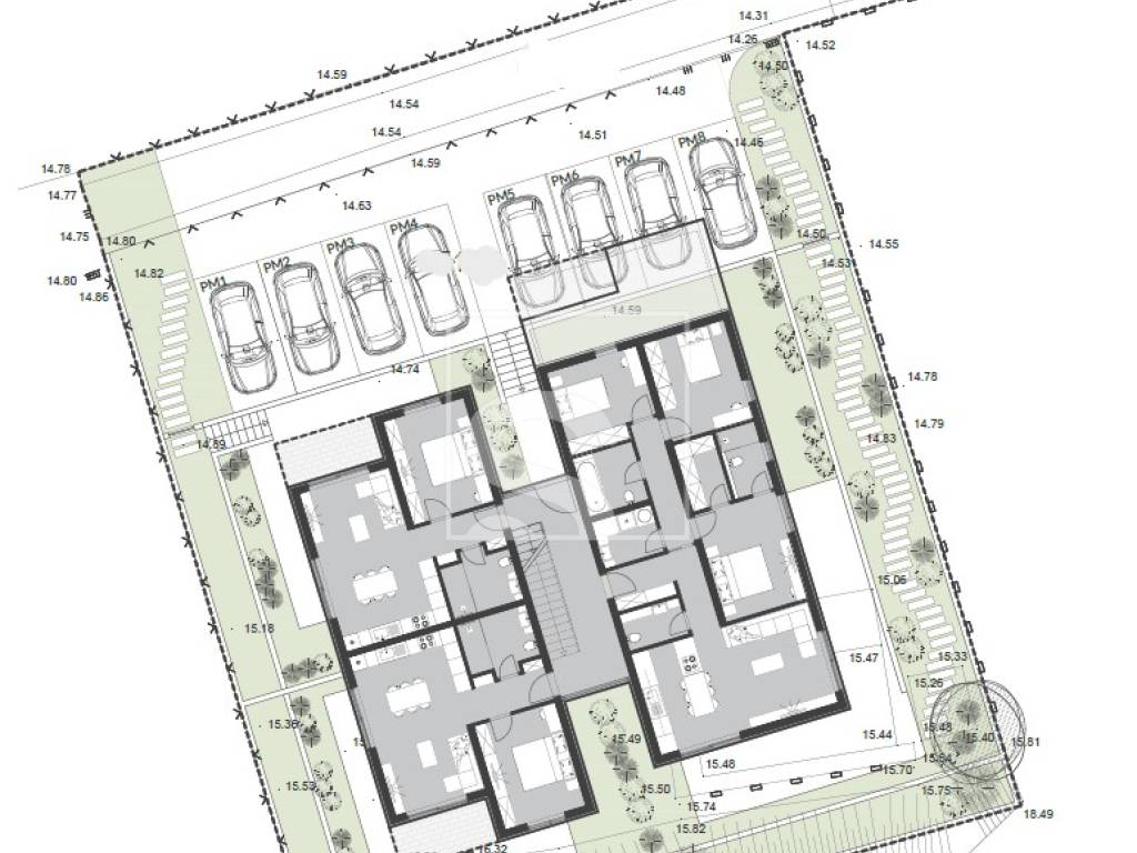 Zgrada se sastoji od 8 stambenih jedinica od kojih su 4 u prizemlju te 4 na 1. katu. Ista je projektirana od strane poznatih arhitekata što se vidi po samim vizualizacijama iste.