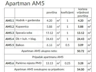 Upravo u ovom ekskluzivnom naselju, na manje od 200m od mora i plaža smjestila se ova moderna i luksuzna novogradnja. Zgrada se sastoji od 8 stambenih jedinica od kojih su 4 u prizemlju te 4 na 1. katu. Ista je projektirana od strane poznatih arhitekata što se vidi po samim vizualizacijama iste. Stanovi su različitih površina i kvadratura te tako imamo nekoliko stanova s jednom spavaćom sobom (1S+DB) te nekoliko stanova s dvije spavaće sobe (2S+DB). Svakom stanu pripada po jedno parkirno mjesto smješteno ispred same zgrade.