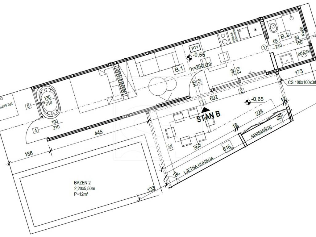 - parkirno mjesto: 12m2 (po koeficijentu 0,25 =3m2)