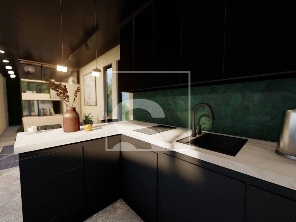 Kuća je ukupne neto stambene površine 27m2 te se sastoji od jedinstvene cjeline u vidu open space sistema. Ulaskom se ulazi u predsoblje/dnevni boravak koji nastavlja s kuhinjom u nizu te se na kraju nalazi kupaonica. S druge strane nalazimo spavaću sobu, odlično izmaknutu od dnevnog dijela visokim ormarima kao pregradu za odvajanje prostora te tako iskoristivši maksimalno svaki dio prostora. S obzirom na to da se radi o manjem objektu svaki pedalj prostora je iskorišten te se ukupni dojam prostora u stvarnosti dojma puno veći. Ispred same kuće nalazi se prostrana natkrivena terasa od ukupno 18m2 na kojoj se nalazi prostor za druženje s vanjskom ljetnom kuhinjom. U nastavku terase prelazimo na ne natkriveni dio terase koji je također popločen te tu počinje dio sunčališta i "plaže"bazena. Bazen je 12m2 površine te je i više nego dovoljan za osvježenje u toplim ljetnim mjesecima.