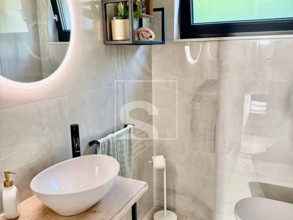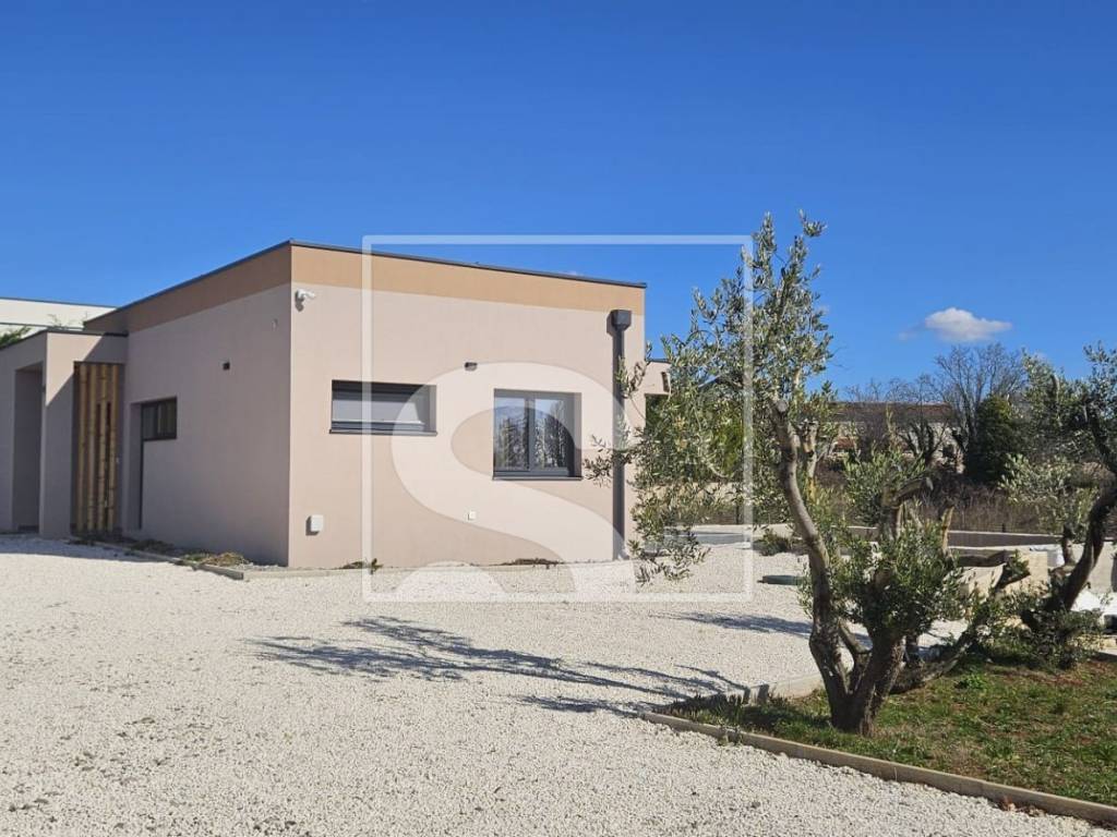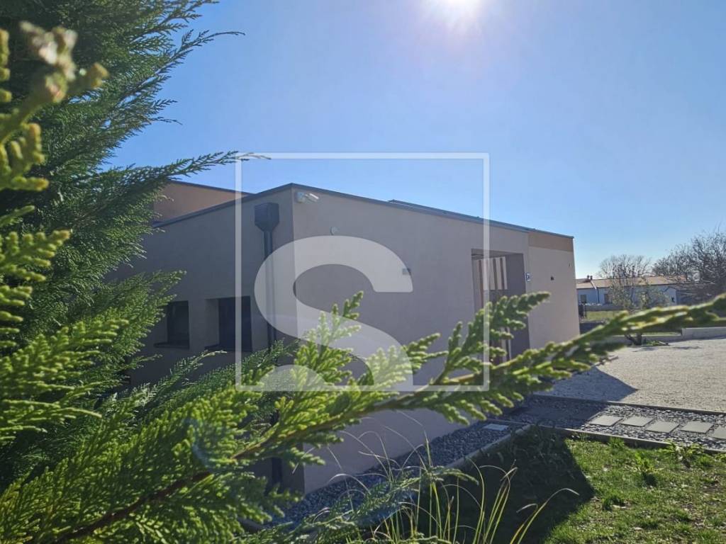 Na pola puta između Juršića i Svetvinčenta, u mirnom i ugodnom okruženju, smještena je moderna prizemnica stambene površine 106 m², na parceli od 548 m², uz asfaltiranu cestu. Kuća je pažljivo projektirana u funkcionalnom tlocrtu u obliku slova „L“, čime se prirodno odvaja dnevni dio od mirne, spavaće zone, osiguravajući maksimalnu udobnost i intimu.