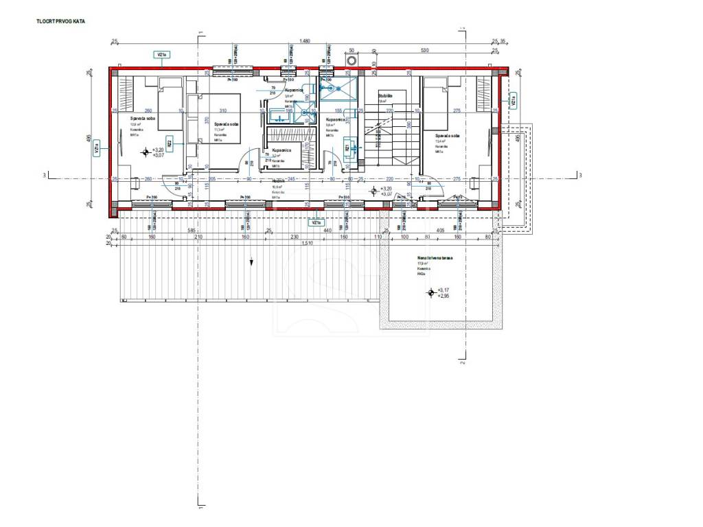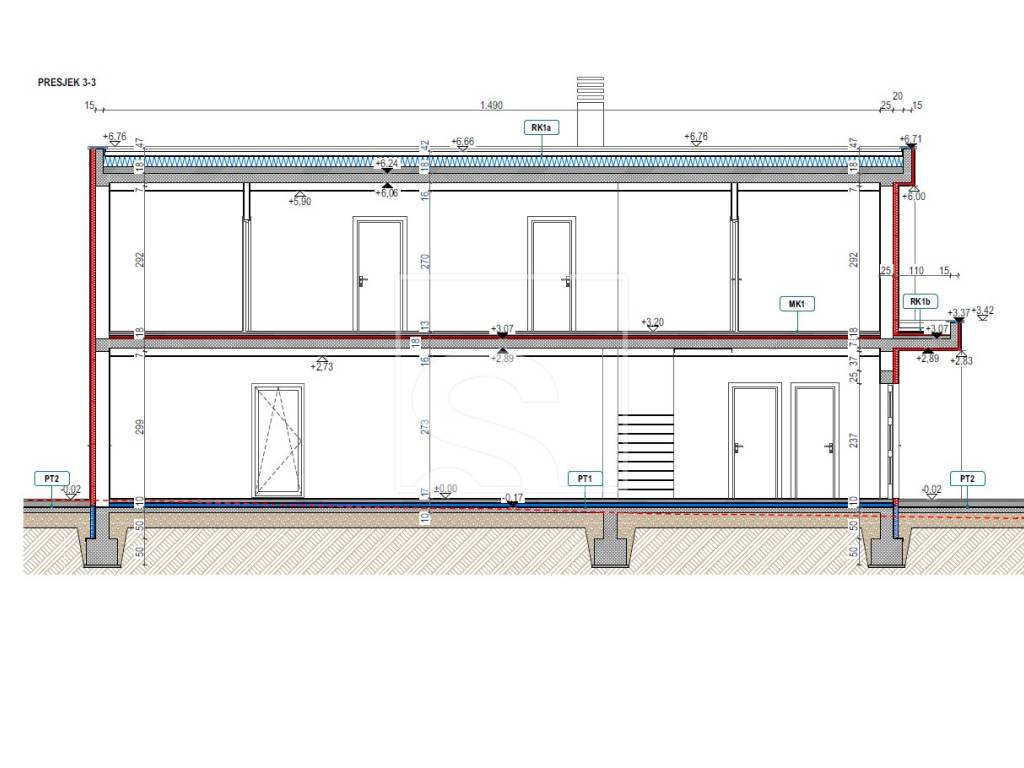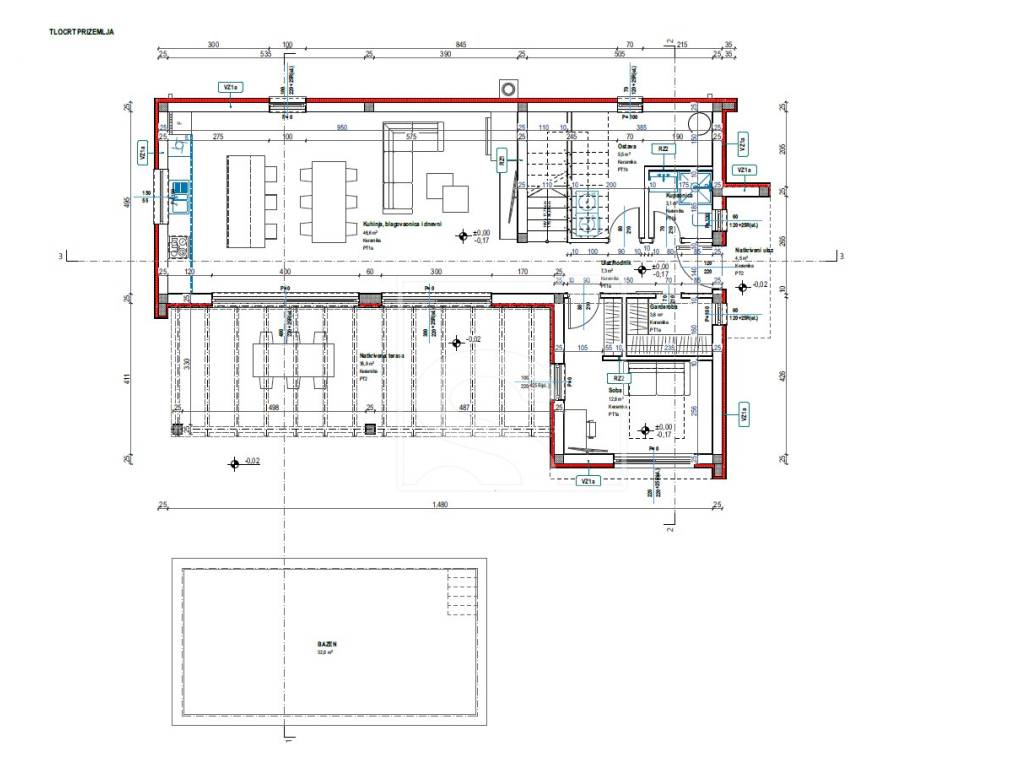 Građevinska dozvola izdana je za kuću s 4 spavaće sobe i 4 kupaonice, odličnog i funkcionalnog rasporeda. Uz kuću predviđen je i bazen.