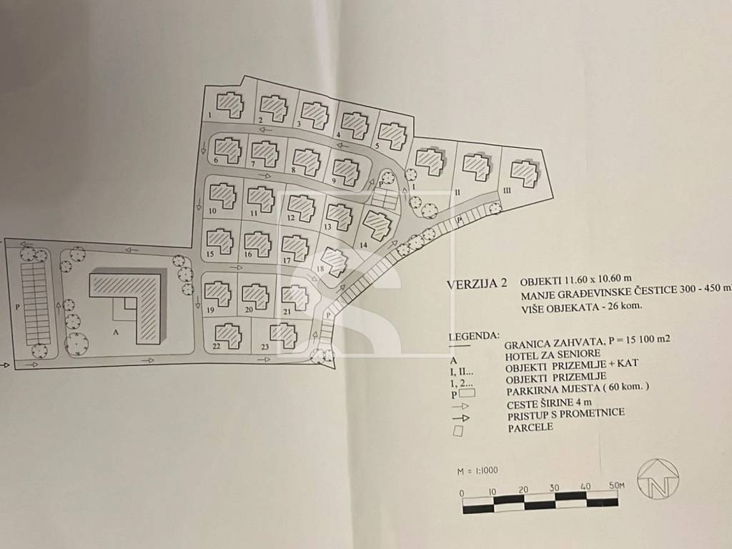 Zemljište se nalazi unutar turističke zone te postoji mogućnost gradnje raznih objekata. Vlasnik zemljišta napravio je projekciju za turistički kompleks u kojem se nalazi hotel i 26 odvojene jedinice (kuće) sve povezano unutarnjom prometnicom, pritom uzimajući u obzir potrebna parkirna mjesta kao i ostala urbanistička i projektna rješenja.