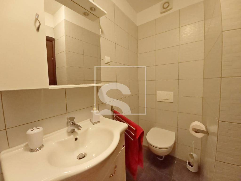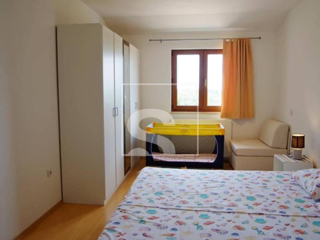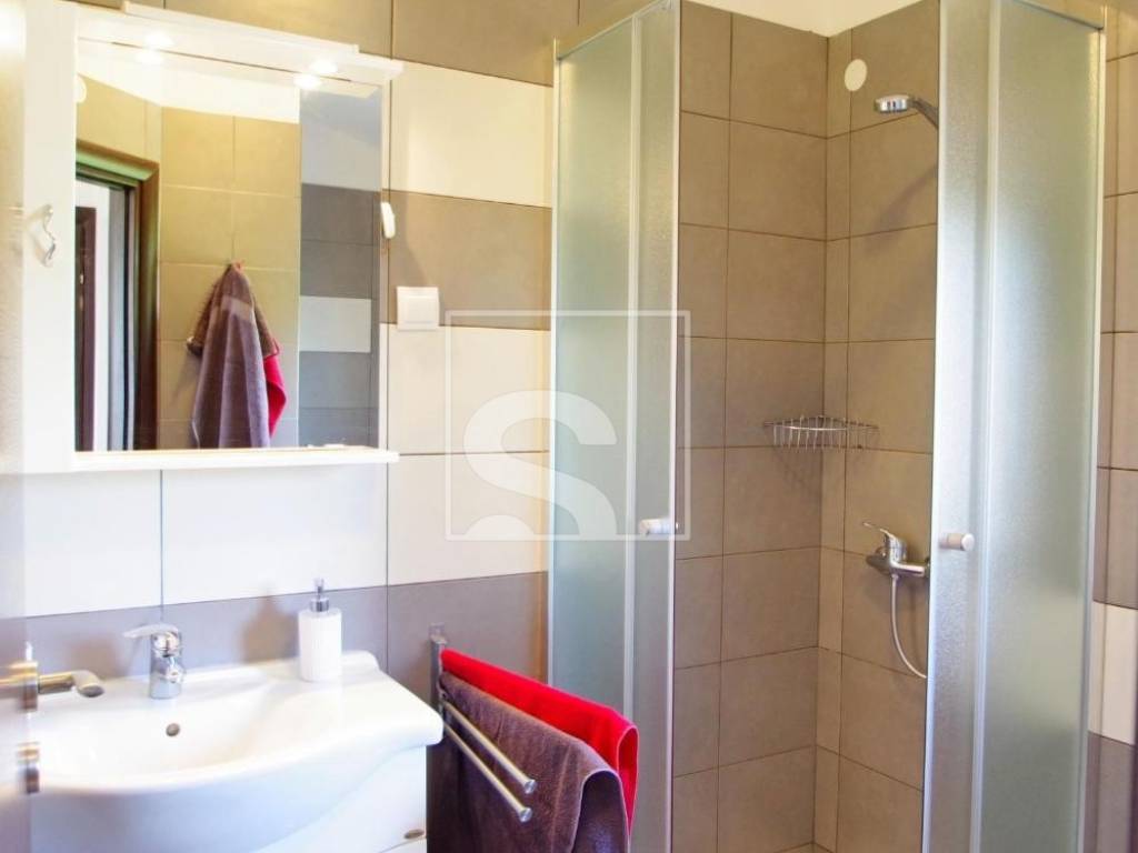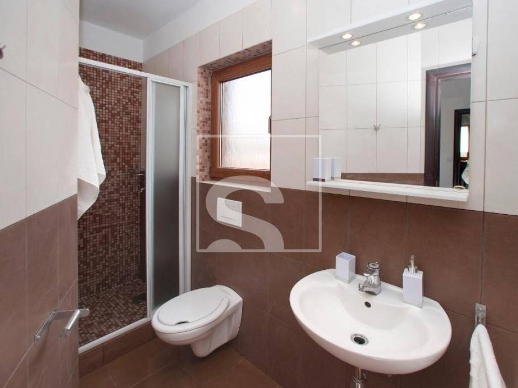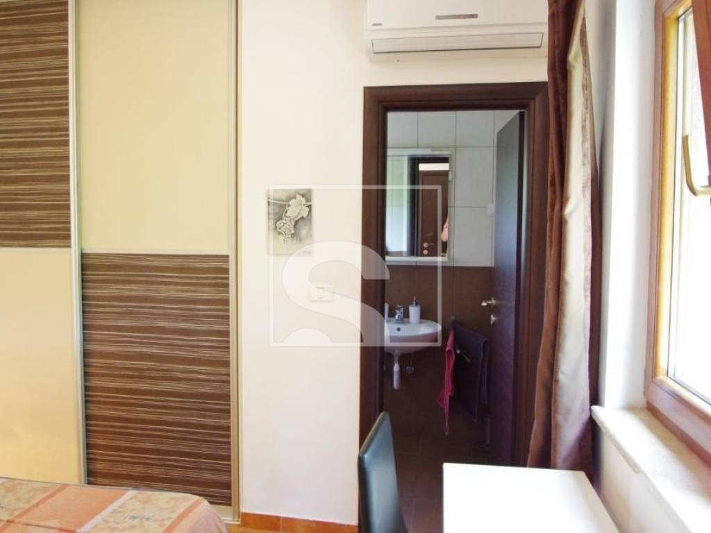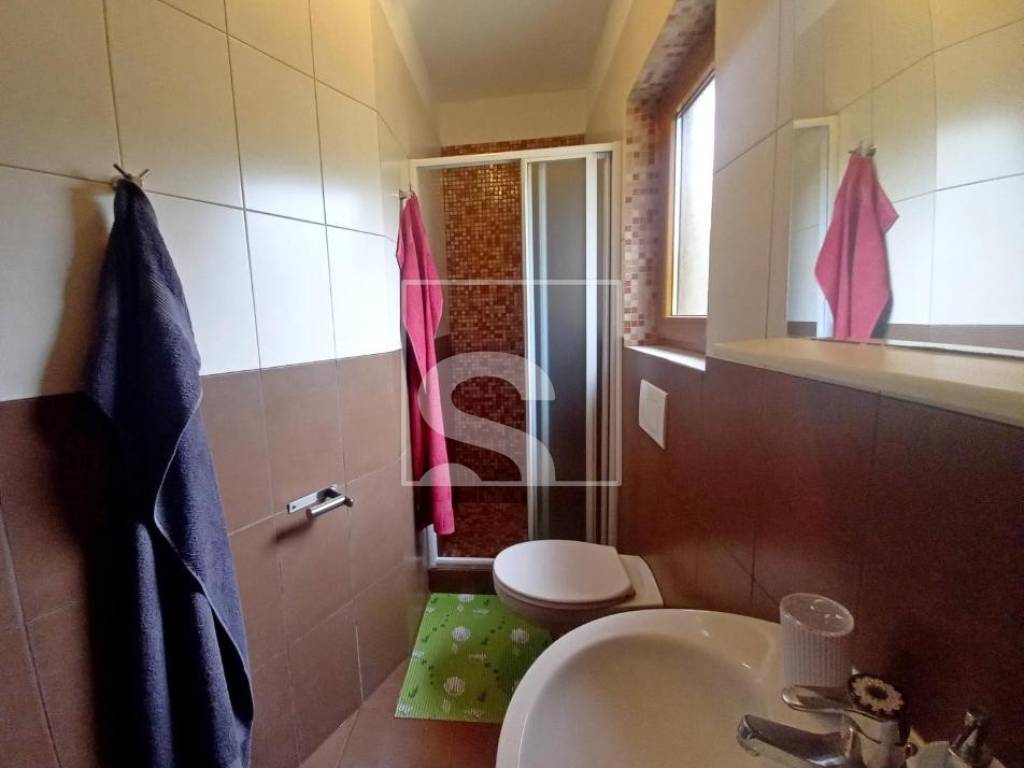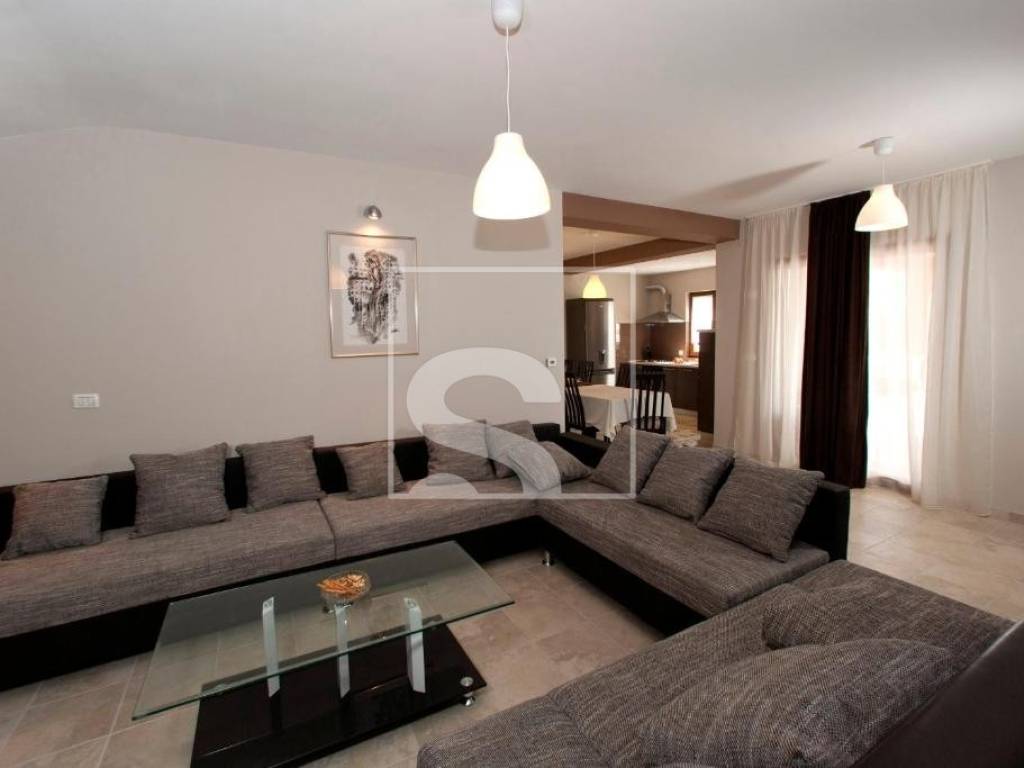 Svega par kilometra udaljeno od centra smjestila se ova moderna kuća s bazenom. Kuća je smještena na mirnoj lokaciji okružena kućama za odmor i obiteljskim kućama. Proteže se kroz četiri etaže, podrum, prizemlje, prvog kata i mansarde. U prizemlju se nalazi kuhinja s blagovaonicom, prostrani dnevni boravak, kupaona, spremište te natkrivena terasa s kaminom. Na katu su 5 spavaćih soba sa svojim kupaonicama te terasa s koje se pruža pogled na bazen, more i zelenilo prepuno livadama i šumama. Iz dnevnog boravka je izlaz na natkrivenu terasu i vrt gdje se nalazi bazen od 53 m². U sklopu bazena je predivan istarski kažun.