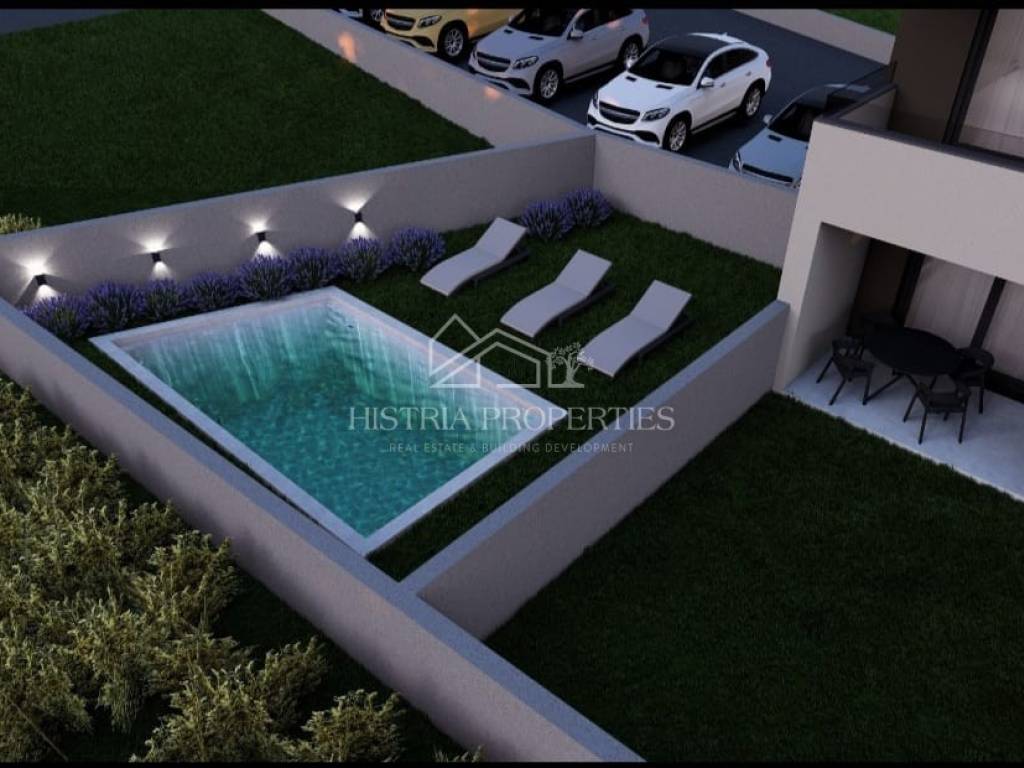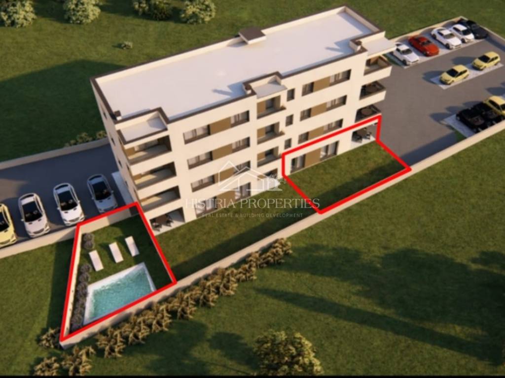 Stan sa bazenom i vrtom u prizemlju novogradnje za ugodan odmor