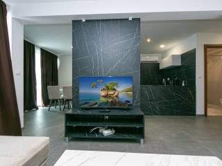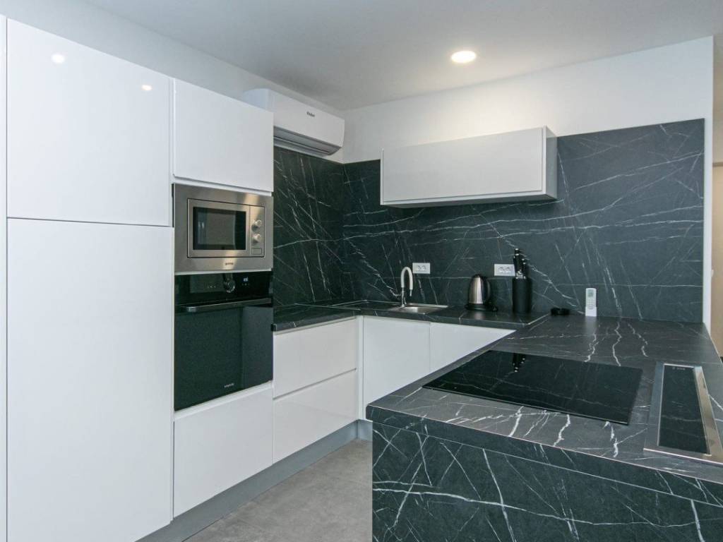 Prostrani dnevni boravak i kuhinja s blagovaonicom imaju izlaz na loggiu, dok dvije spavaće sobe, od kojih jedna s privatnom kupaonicom, omogućuju maksimalnu udobnost i funkcionalnost. Spavaća soba nudi prekrasan pogled na more, a stan je orijentiran prema jugu i istoku, što osigurava obilje prirodnog svjetla i uživanje u panoramskom pogledu. Stan se prodaje potpuno namješten i klimatiziran, spreman za trenutni useljenje ili nastavak iznjamljivanja.