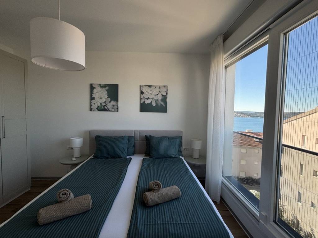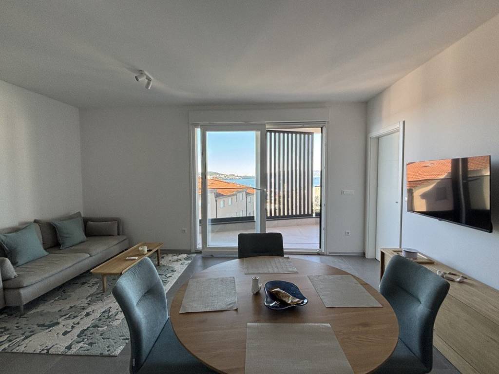 Prodaje se prostran dvosoban penthouse stan u novogradnji s pogledom na more i krovnom terasom, na odličnoj lokaciji na Čiovu i u blizini svih sadržaja. Nalazi se na prvom katu novoizgrađene stambene zgrade s dizalom i orijentiran je na zapad.