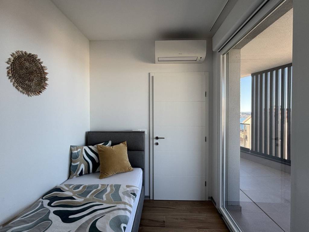 Ima 48,44 m i sastoji se od hodnika, dvije spavaće sobe, od kojih jedna ima izlaz na balkon od 16,04 m, kupaonice te kuhinje, blagovaonice i dnevnog boravka iz kojeg se izlazi na balkon s otvorenim pogledom na more. Najveća prednost stana je krovna terasa od nekih 106 m, a koja se dijeli sa susjednim penthouse stanom na koju se mogu postaviti različiti sadržaji ovisno o željama kupca. Stan se prodaje u potpunosti namješten i opremljen protuprovalnim vratima, komaricama te električnim podizačima roleta. Grijanje i hlađenje se odvija putem klima uređaja u svakoj prostoriji te podnog grijanja u kupaonici, a u podrumu zgrade se nalazi pripadajuće garažno parkirno mjesto.