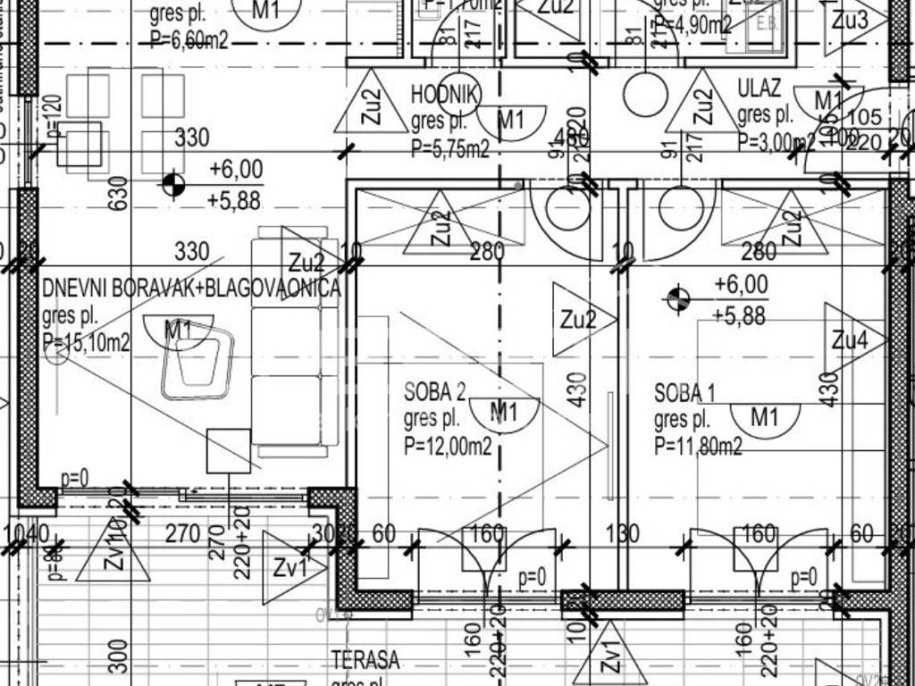 Iz ponude izdvajamo stan S13 koji se nalazi na 2. katu, a sastoji se od: ulaznog dijela, dnevnog boravka i blagavaonice, kuhinje, hodnika, 2 spavaće sobe, kupaonice, zasebnog toaleta, prostrane terase 20,50m2 (koef. 0,50).