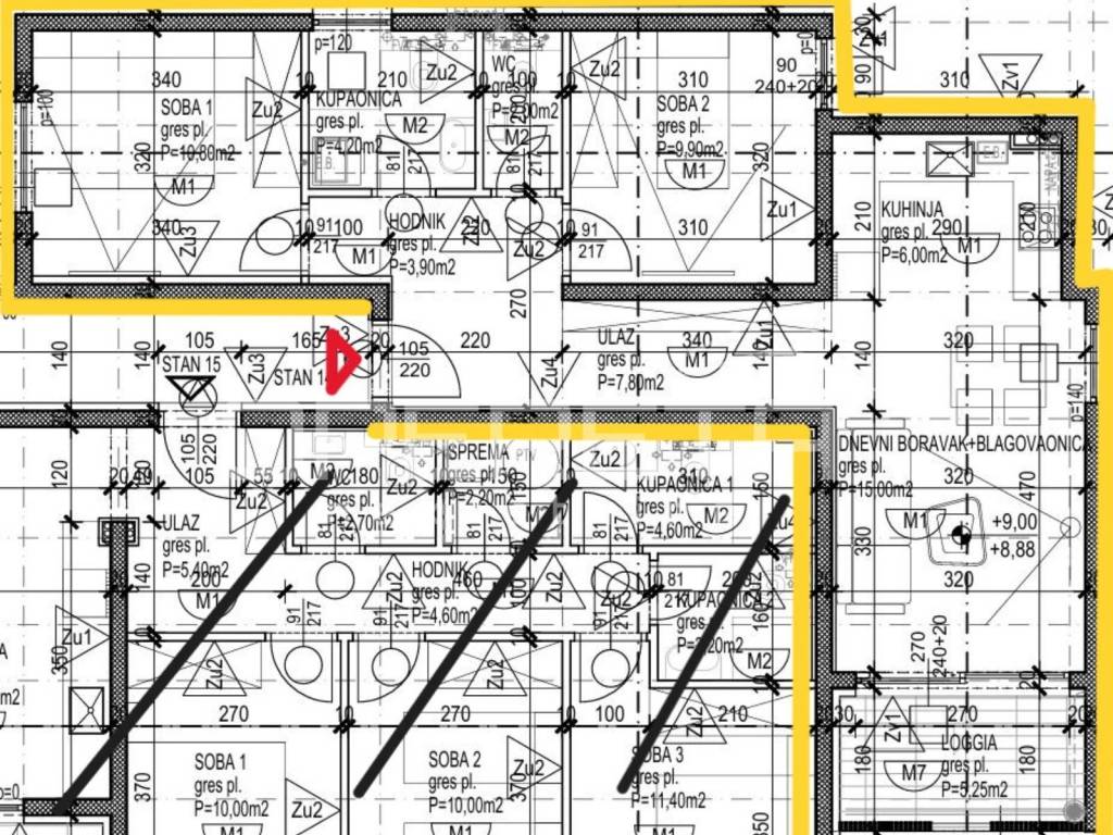 Iz ponude izdvajamo stan S14 koji se nalazi na 3. katu, a sastoji se od: ulaznog dijela, dnevnog boravka i blagavaonice, kuhinje, hodnika, 2 spavaće sobe, kupaonice, zasebnog toaleta i loggie površine 5,25m2 (koef. 0,75).