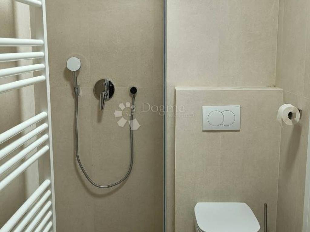 Kupaonica ima walk-in tuš te perilicu i sušilicu rublja.