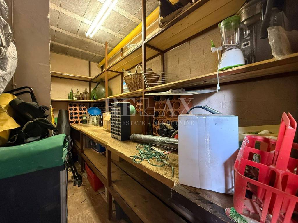 U prizemlju se nalazi stan s dnevnim boravkom, kuhinjom i blagovaonicom, spavaćom sobom i kupaonicom, uz dodatne ostave i pomoćne prostore.