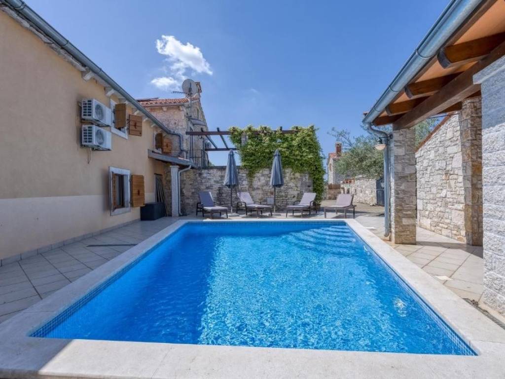 U ponudi imamo predivnu kuća s bazenom, u potpunosti restauriranu u autohtonom istarskom stilu. Kuća ima 145 m2 koja su raspoređeni na prizemlje i kat, unutarnjim stepeništem.