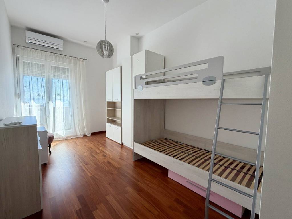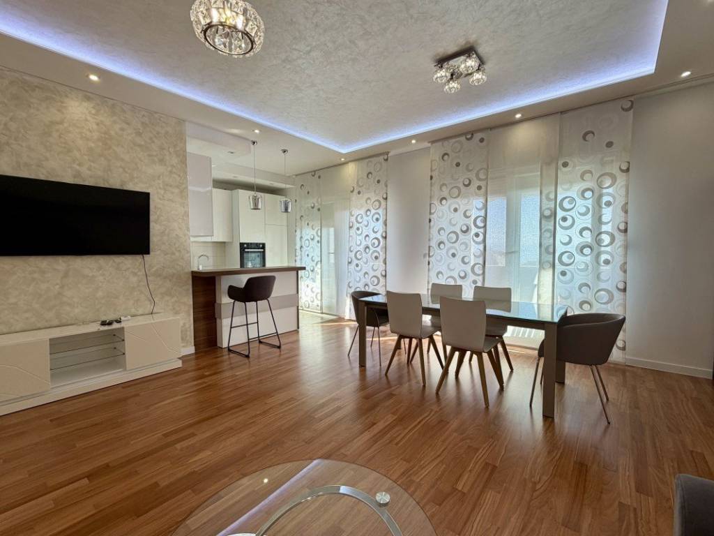 Stan je nedavno osvježen i kompletno namješten te se prodaje potpuno opremljen, spreman za useljenje bez dodatnih ulaganja. Visina stropova od 3,15 m dodatno naglašava osjećaj prostranosti i elegancije prostora, a za maksimalnu udobnost tijekom cijele godine ugrađena su četiri klima uređaja.