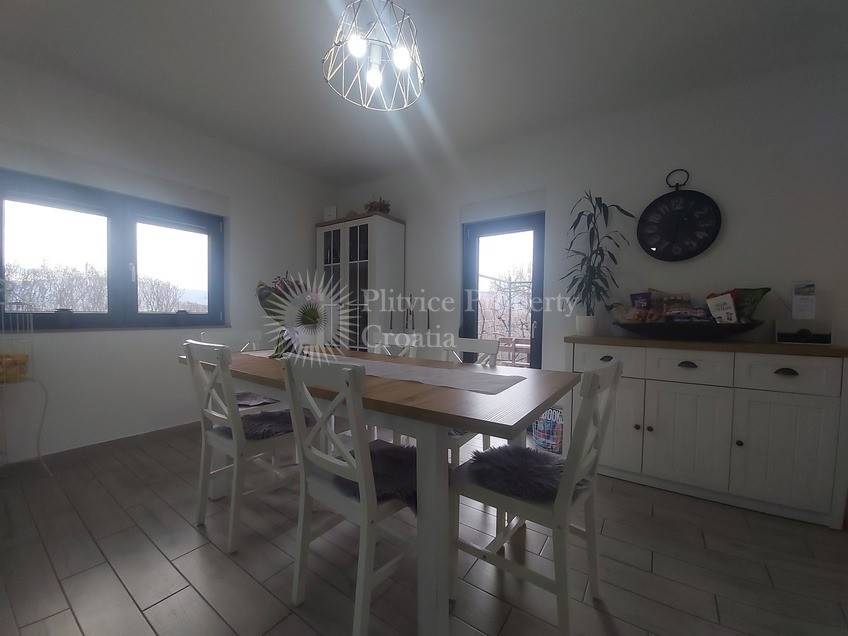 Ova obiteljska kuća, pogodna za korištenje kao privatni smještaj ili kuća za odmor, nalazi se u blizini Rakovice uz mirnu asfaltiranu cestu. Okružena prirodom i s ugodnim pogledom na krajolik, nekretnina pruža miran ambijent, a istovremeno je blizu centra sela i lokalnih sadržaja.